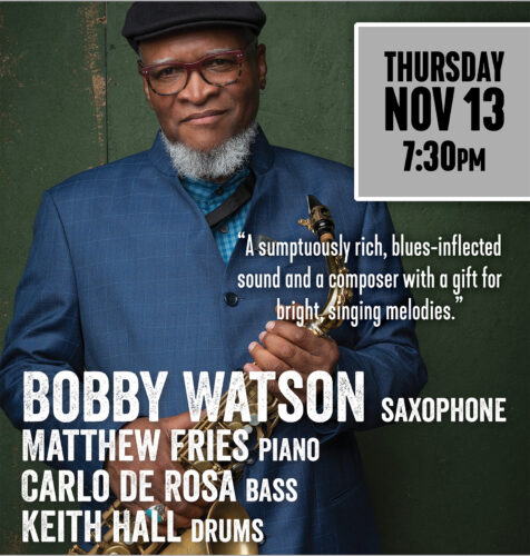 BOBBY WATSON sits among the pantheon of present-day jazz greats. Born in Lawrence, Kan., his career now spans more than four decades. A multi-GRAMMY®️-nominated saxophonist, composer, bandleader, educator and producer, Watson trained formally at the University of Miami and then, from 1977-1981, earned his “doctorate” as musical director of Art Blakey’s Jazz Messengers. During his four-plus years with the legendary drummer, the saxophonist contributed to 14 Jazz Messengers recordings — more than anyone else in the group’s 35-year (1955-1990) storied history. In addition to Blakey, the saxophonist also worked with notable jazz icons and elder statesmen such as Max Roach, Louis Hayes, George Coleman and Sam Rivers, Joe Williams, Lou Rawls, Betty Carter, Dianne Reeves and Carmen Lundy. Watson has recorded over 30 albums as a leader and countless recordings as a sideman.