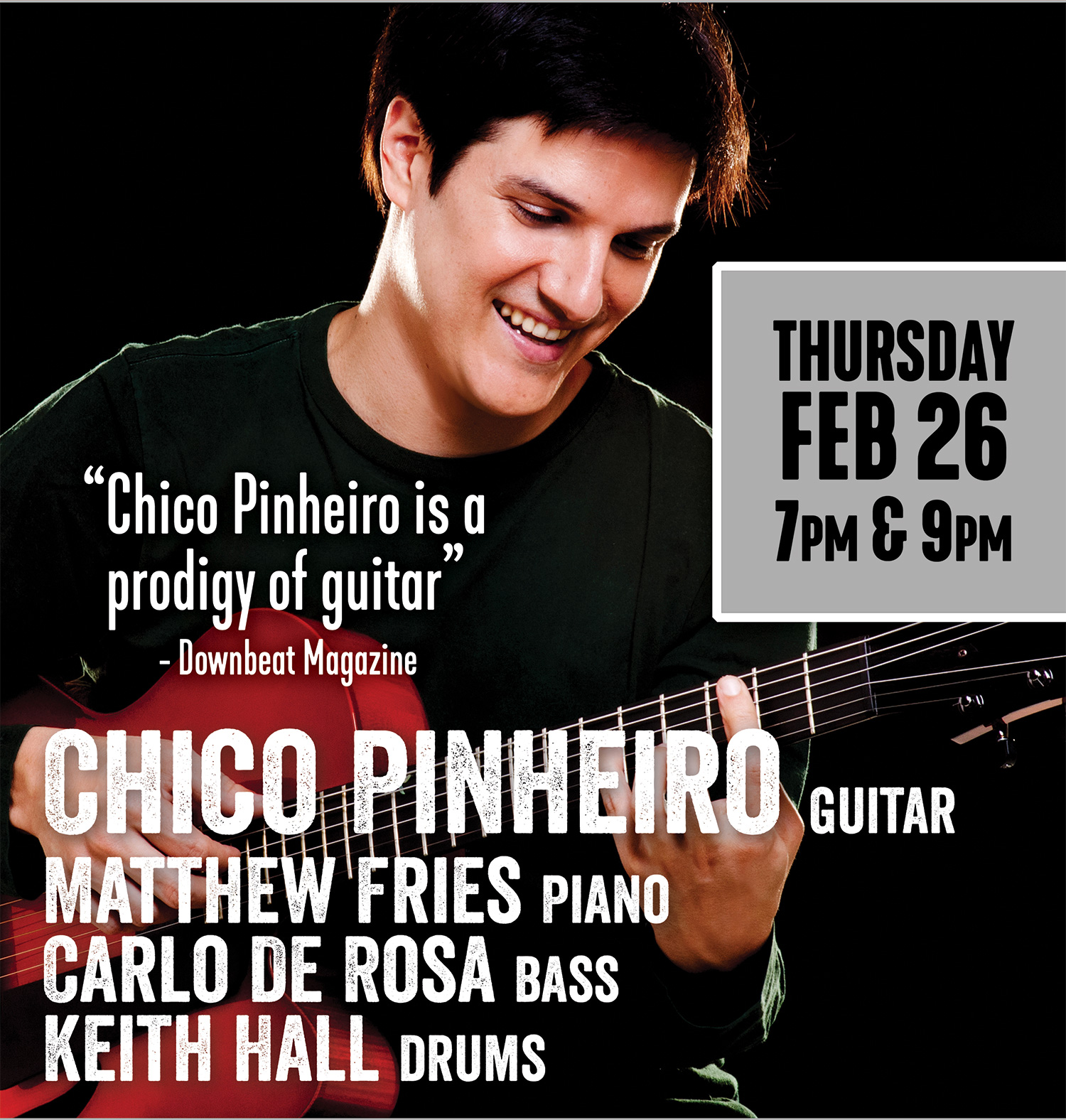 Born and raised in São Paulo, Brazil, Chico Pinheiro is considered a leading figure in and outside the Brazilian music scene as a guitarist, composer and arranger.